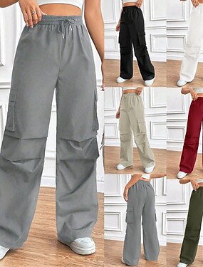 Жен. Брюки карго Брюки Активный Мода На каждый день Полная длина Нормальная Полотняное плетение Кулиска Эластичная талия Несколько карманов Комфорт Воздухопроницаемость Мягкий Слабоэластичная