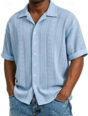 Муж. Рубашка Текстура Рубашка на пуговицах Рубашка жаккардовая Черный Белый Светло-зеленый Темно синий Лиловый С короткими рукавами Геометрический принт Лацкан Повседневные на открытом воздухе Жаккард