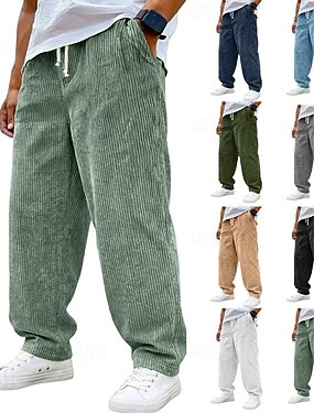 Муж. Штаны Вельветовые брюки Мешковатые брюки Повседневные брюки Кулиска Эластичная талия Полотняное плетение Комфорт Дышащий Полная длина Повседневные на открытом воздухе Для вечеринок