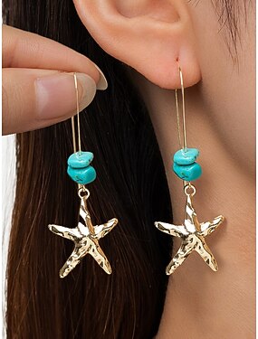 женские золотые серьги-подвески в виде морских звезд – бирюзовые камни, пляжные украшения в стиле бохо для летнего отдыха, вечеринок в морском стиле и курортного образа