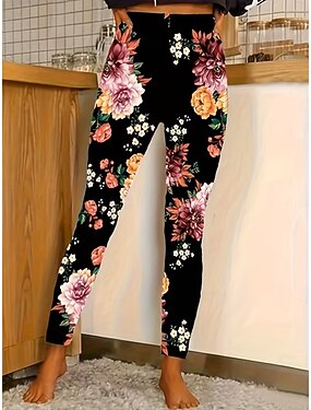 Жен. Брюки Леггинсы Уютные леггинсы Уличный стиль На каждый день Полная длина Средняя талия Цветы Эластичная талия С принтом удобный На открытом воздухе Удобный на открытом воздухе Отпуск