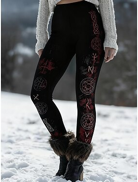 Жен. Леггинсы Уютные леггинсы Отпуск Винтаж Этнический стиль Полная длина Завышенная Графика Рисунок Удобный Эластичная Повседневные Отпуск Для улицы Винный Весна Осень Зима Приталенный крой
