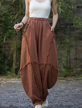 Жен. Брюки из хлопка и льна Чино Шаровары Отпуск Классический На каждый день Полная длина Нормальная Полотняное плетение Кулиска Карман Удобный Неэластичная Повседневные на открытом воздухе Для улицы