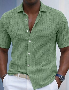 Муж. Рубашка Ребристый трикотаж Текстура Повседневная рубашка Кнопка рубашка Черный Белый Светло-зеленый Бордовый Темно синий С короткими рукавами Полотняное плетение Рубашечный воротник