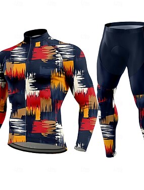 Муж. Велокофты и лосины Велокофты Длинный рукав Зима Осень Желтый Красный Зеленый Графика Геометрический принт С узором Велоспорт Сохраняет тепло 3D