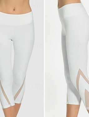 Жен. Кнопки для тренировок Спортивные укороченные леггинсы Сетка Утягивание живота Завышенная Спортивная Пилатес Бег Нижняя часть Сплошной цвет Черный Белый Осень Виды спорта Спортивная одежда