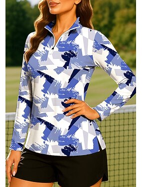 Жен. Геометрический принт Толстовка Топы Футболка-поло Теннисная рубашка Длинный рукав С принтом Четверть молния Pullover УФ-защита Эластичный Дышащий Теннис Гольф Пиклбол