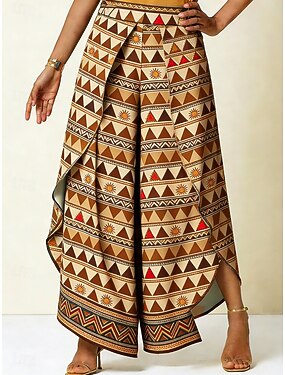 Жен. Широкие Брюки Повседневные брюки Отпуск Классический На каждый день Полная длина Нормальная Графика Геометрический рисунок Многослойный Ассиметричный Мягкий Удобный Неэластичная