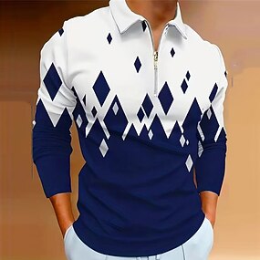 Муж. Геометрический принт Рубашки-поло на молнии Рубашка для гольфа Длинный рукав Футболки поло Рубашки с воротником На каждый день Одежда для отпуска Официальная одежда Праздничная одежда 3D