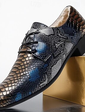 Мужские туфли из искусственной кожи сине-серого цвета с тиснением под змеиную кожу, современные модные кроссовки на шнуровке для ночных клубов, модных мероприятий и смелых образов.