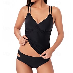 Жен. Танкини Купальник из двух частей Оборки Купальники Купальники Черный Коричневый Дышащий Быстровысыхающий Легкость Без рукавов - Плавание Серфинг Пляж Лето Весна