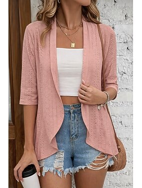 Жен. Повседневная куртка Дышащий Удобный Оборки На каждый день Полотняное плетение Отпуск Для улицы Повседневные На каждый день Открытый перед Обычная Без воротника Стандартный Рукав 3/4