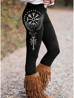 Леггинсы Viking Boho для женщин отпуск винтажный этнический стиль полный длины высокая талия графика буквы быстро сохнущие воздухопроницаемость мягкие эластичные формальные для outdoor отпуска черные