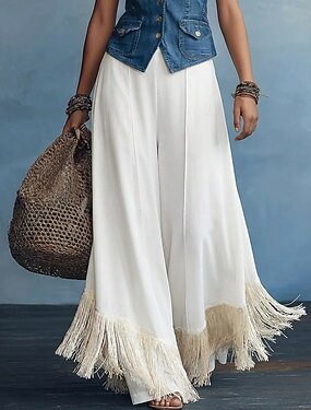 Жен. Беллое дно Чино Брюки палаццо Элегантный стиль Отпуск Винтаж Полная длина Нормальная Сплошной цвет С кисточками Пэчворк Карман удобный Дышащий Неэластичная Повседневные Дом на открытом воздухе