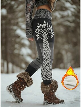 Жен. леггинсы на флисовой подкладке Леггинсы Винтаж Этнический стиль Этнический По щиколотку Завышенная Графика Геометрический рисунок Абстракция 3D печать Сохраняет тепло С защитой от ветра удобный