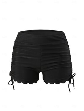 Жен. Купальники Эластичные боксеры Шорты купальник Рюши Кулиска Завышенная Отпуск Одежда для пляжа Сплошной цвет Без рукавов Купальники