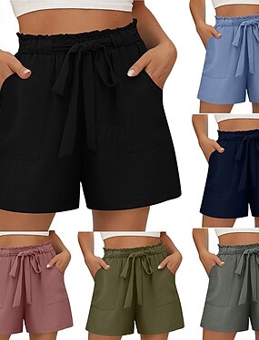 Жен. Чино Шорты Отпуск Уличный стиль На каждый день Короткие Нормальная Полотняное плетение Кулиска Карман Эластичная талия удобный Удобный Дышащий Слабоэластичная