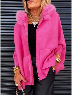 Жен. Повседневная куртка Удобный Дышащий Молния Карман Мода На каждый день Полотняное плетение Повседневные Отпуск Для улицы На каждый день Молния Обычная Воротник-стойка Стандартный Длинный рукав