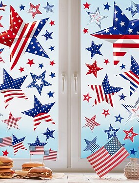 2 листа наклеек для украшения вечеринки в честь Дня независимости США, для окон, стекол, дверей, торговых центров, окон, стекол, электростатические наклейки на окна.