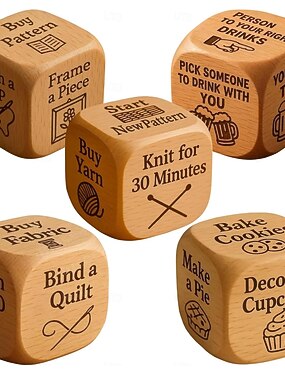 Деревянные игральные кости для квилтинга ручной работы с 6 выгравированными заданиями по шитью, забавный подарок для любителей квилтинга, вязания, выпечки, питья и вышивания, креативный подарок для