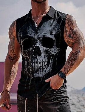 Муж. Черепа Скелет Рубашка Кнопка рубашка Безрукавка Без рукавов Темный готический стиль на открытом воздухе Повседневные Лето Весна Отложной 3D печать Два передних кармана