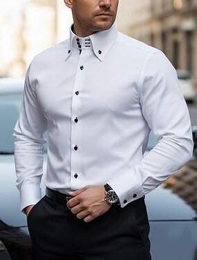 Муж. Поповер Рубашка Оксфордская рубашка Джинсовый Синий Черный Белый Темно синий Темно-синий Длинный рукав Полотняное плетение Воротник с уголками на пуговицах (button-down)