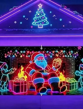Рождественский баннер на дверь гаража, светящийся в темноте, 2D, праздничные плоские чехлы на дверь гаража с мультяшными Санта-Клаусом и эльфом, украшение для рождественской вечеринки на открытом