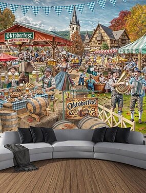 Гобелен Oktoberfest Баварский стенд с изображением кренделей и пива Большое искусство декор фото фон фестиваль вечеринка