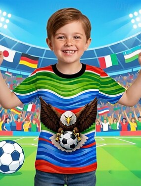 Мальчики 3D Графика Футбол Футбольные футболки Футболка С короткими рукавами 3D печать Лето Весна Спорт Мода Уличный стиль Дети 4-12 лет Вырез под горло Повседневные на открытом воздухе Стандартный