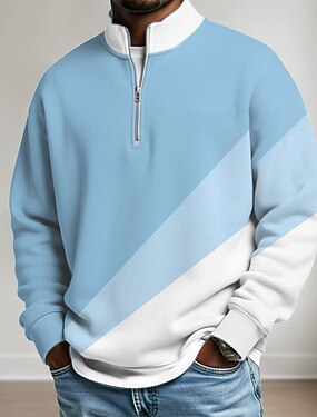 Муж. Геометрический принт Контрастных цветов Рубашки-поло на молнии Длинный рукав Футболки поло дедушкин воротник На каждый день Школа Одежда для спорта и отдыха Праздники На каждый день 3D