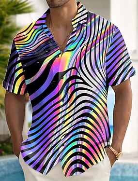 Муж. Радужный Абстракция Линии оп-арта Рубашка Кнопка рубашка Повседневная рубашка С короткими рукавами Мода Повседневная Повседневные Отпуск Лето Весна Отложной 3D печать рубашки с воротником