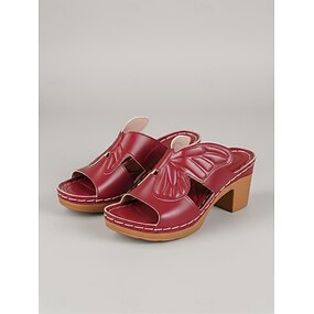 Женские бордовые сандалии на блочном каблуке с тиснением в виде бабочек – удобные сандалии-мюли с открытым носком для работы в саду и повседневной носки.