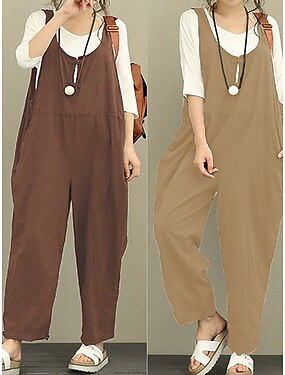 Жен. Нормальная Комбинезоны Активный Сплошной цвет Без рукавов Прямой силуэт U-образный вырез Пэчворк Карман Повседневные Отпуск Свободное облегание Черный Винный Темно синий Лето