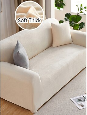 1 комплект, зимний теплый плюшевый однотонный эластичный чехол для дивана – современный минималистичный стиль, нескользящий, универсальный, подходит для Г-образных диванов и 1/2/3/4-местных диванов