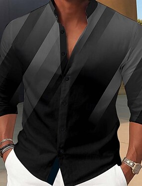 Муж. Геометрический принт Градиент Линии Рубашка Рубашка с воротником-стойкой Длинный рукав Мода Повседневная На каждый день Праздники Весна Осень Китайский воротник-стойка Воротник-стойка 3D