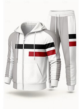 Новогодняя тематика Муж. Толстовка Спортивный костюм Спортивный костюм из двух частей Кулиска Застегнуться Геометрический принт Наборы одежды Осень Красный Назначение На открытом воздухе Путешествия