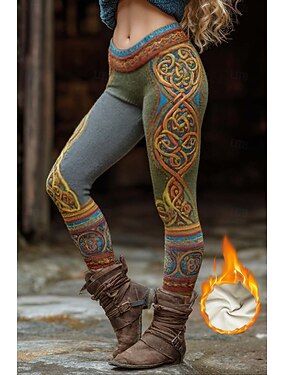 Леггинсы Viking Boho для женщин флисовые с подкладкой леггинсы отпускные винтажный этнический стиль полная длина высокая талия графика геометрический узор абстрактная 3D печать термостойкие теплые