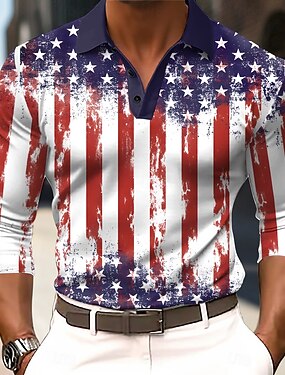 4 июля 2026 г., 250-летие Муж. Американский флаг США Поло Длинный рукав Футболки поло Лацкан На каждый день Для улицы На каждый день Фестивальный наряд 3D печать Пуговицы Весна Осень Зима
