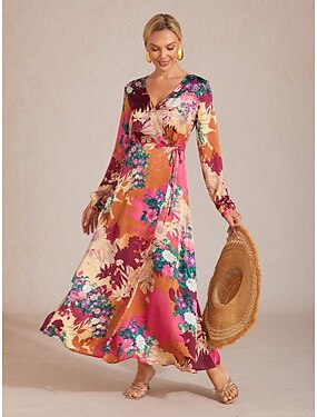 свободное платье миди с цветочным принтом и v-образным вырезом