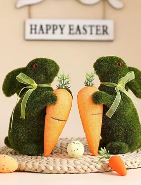 Наполнители для пасхальных корзин, фигурки кроликов из мха с морковкой, пушистые зеленые статуэтки кроликов для пасхального декора дома, весеннее садовое украшение для стола, милый пасхальный подарок