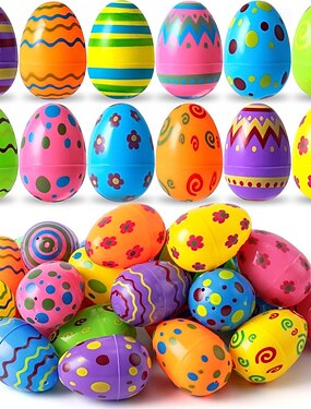 Набор из 24 ярких пластиковых пасхальных яиц с рисунками. Идеально подходит для пасхальных охот за яйцами, наполнения корзин, в качестве призов для класса, для наполнения угощений и подарков на