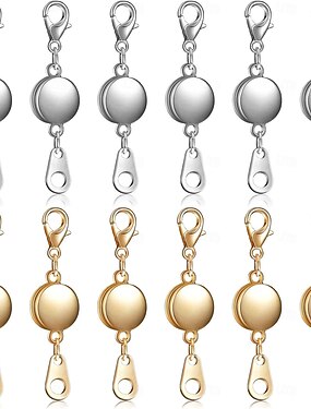 Набор из 12 магнитных застежек для ожерелий. Удлинитель для украшений с сильным магнитом. Магнитная застежка для изготовления украшений, ожерелий и браслетов. Золотое и серебряное покрытие.