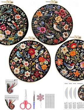 Набор для вышивания птиц с цветами: подарок для рукоделия в технике вышивки крестом.