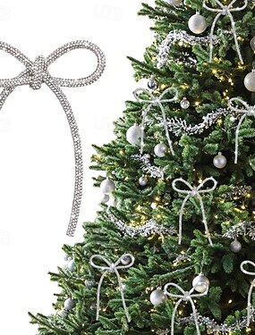 6 рождественских бантов-украшений цвета шампанского, сверкающие стразы, банты с металлической проволокой, подходят для украшения рождественской елки, цветочных гирлянд, подарочной упаковки