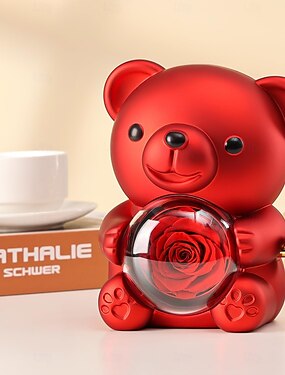 Милый плюшевый мишка с засушенной розой — настоящая роза внутри мишки в элегантной подарочной коробке — романтический подарок для нее на День матери, свадьбу, годовщину и девичник. Размер: 13*10*9 см.