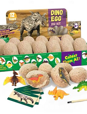 Набор яиц динозавров для раскопок для детей - Подарок игрушки динозавров для детей 3-12 лет - 12 яиц и сюрпризные динозавры - Подарки в корзину - Научные STEM активности - для мальчиков и девочек