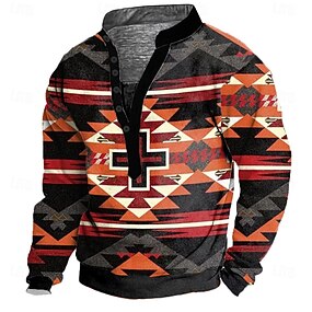 Муж. Ацтеков Толстовка Этнический Винтаж Ретро Длинный рукав Вырез под горло Подарок Путешествия Уличная одежда Желтый Синий Оранжевый Кнопка спереди Осень Зима Дизайнер S M L XL XXL XXXL