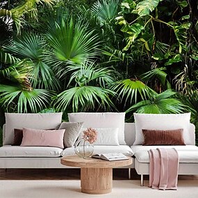 тропические зеленые листья пальмы, веерный лист монстеры, ботанический сад, пышная листва джунглей, экзотическое растение, настенный гобелен, настенное панно, фон для гостиной, спальни, домашнего