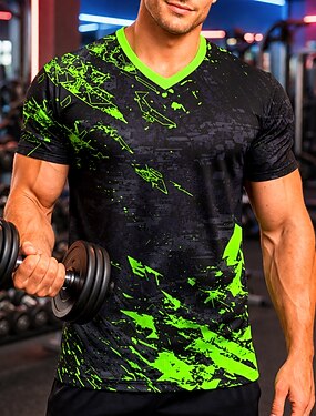 Муж. Геометрический принт Абстракция Футбольное лето Глобальный матч Футболка для бега Лето С короткими рукавами UPF 50 Быстровысыхающий Дышащий Тренажерный зал Бег Фитнес Зеленый и черный