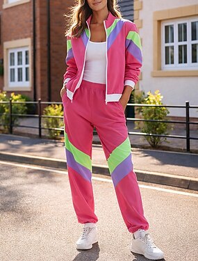 Жен. Футбольное лето Спортивная одежда 80-х Глобальный матч Кулиска мешковатый Контрастных цветов Жакет Комплект спортивной одежды Лето Весна Красный Синий Тренировка в тренажерном зале Бег Фитнес